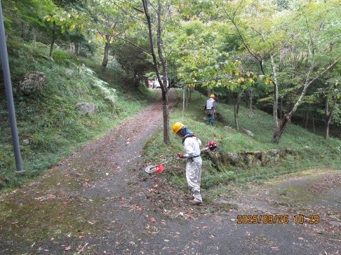 市民参加による里山里地保全活動 · 2025/10/04 桜の苑 活動報告(3) 2025年9月26日(金) 曇り 最終3日目は2苑の整備を20名で行いました。本苑は紅葉狩りを楽しんでいただくため11月の毎週末に開園されます。このため、より丁寧な手入れが必要です。本苑はつづら折りの坂道が特徴で、このため1苑と比べて草刈り作業は少ないのですが、散策路等に溜まった落ち葉の清掃が大変です。ここではブロアーが大いに活躍しました。 tagPlaceholderカテゴリ: 桜の苑