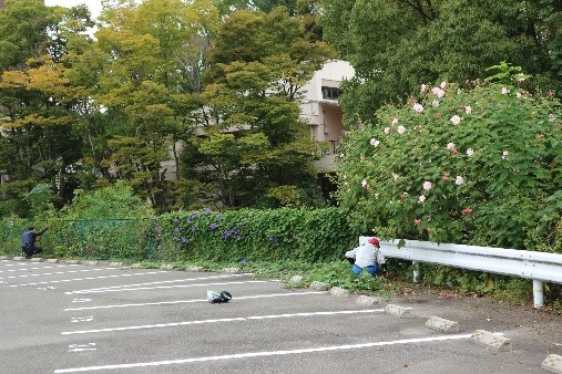 朝夕ようやく涼しくなりましたが、この日は台風の影響で日中の気温は30℃近くまで上がり湿度も高く蒸し暑い中での活動になりました。やはり熱中症に気を付けながらこまめな水分補給と休憩をとるよう参加者への注意喚起が促されて作業が始まりました。